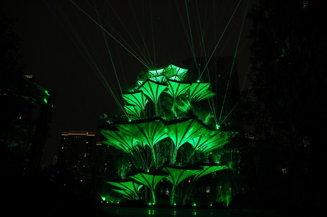 夜幕降临,生命之树光影艺术首秀震撼上演。国际知名特效公司Territory Studio为生命之树倾力打造的光影艺术大秀闪耀城市夜空,展现文化、自然与未来,从丝绸之路的人文记忆到春夏秋冬的四季转变,再到未来的期许展望,视觉化生命之树所聚合的人、物质、思想与时间的流动。未来,生命之树还将持续在节庆及特定节点为城市展现特别表演。
