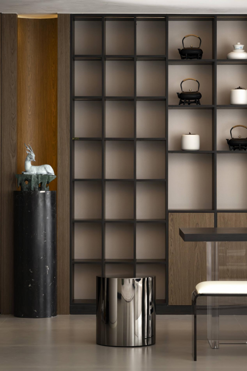 在色彩搭配上,热烈激昂的暖色与理智高远的冷色点缀其中,张弛有度,收束交织。精巧的水晶吊灯在光影交错中折射出璀璨光芒,每一件家具艺术品都经过打磨推敲,力求每一个细节都能传达出细腻入微的质感。