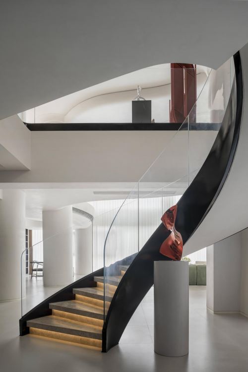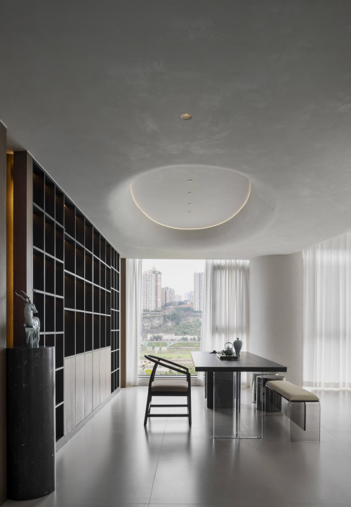 回归于居室的内核,我们以“雕塑空间”为设计主题,将原始梁柱骨架融入装饰形体,焕发出具有张力和感染力的灵动空间,墙、顶、地之间再无阻隔,浑然一体。
