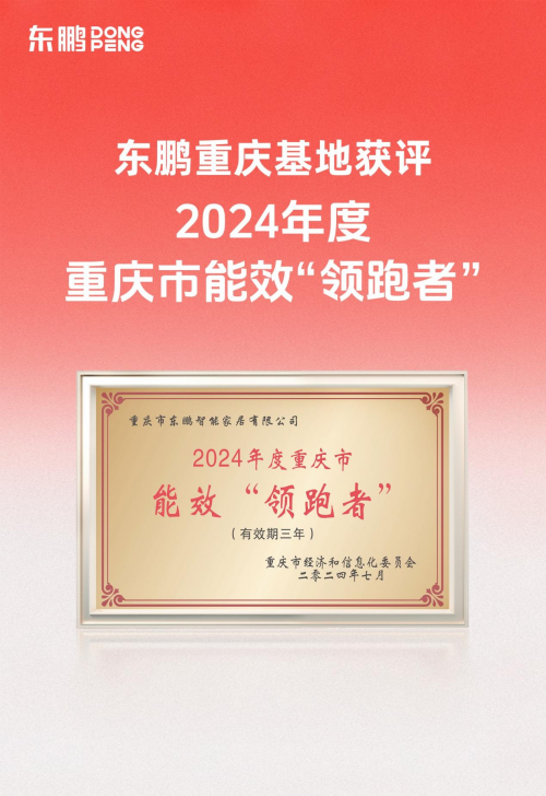 - 在线能效升级绿色领跑|东鹏重庆基地荣获2024年度重庆市“能效领跑者”