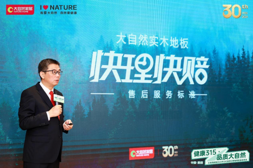 (大自然家居集团副总裁林皓发布《大自然实木地板快理快赔服务标准》)